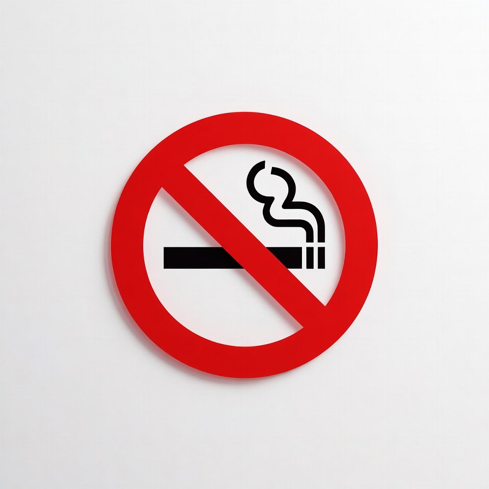 A bold sign indicates smoking is prohibited. The red circle with a line through a cigarette visually communicates the no smoking rule.