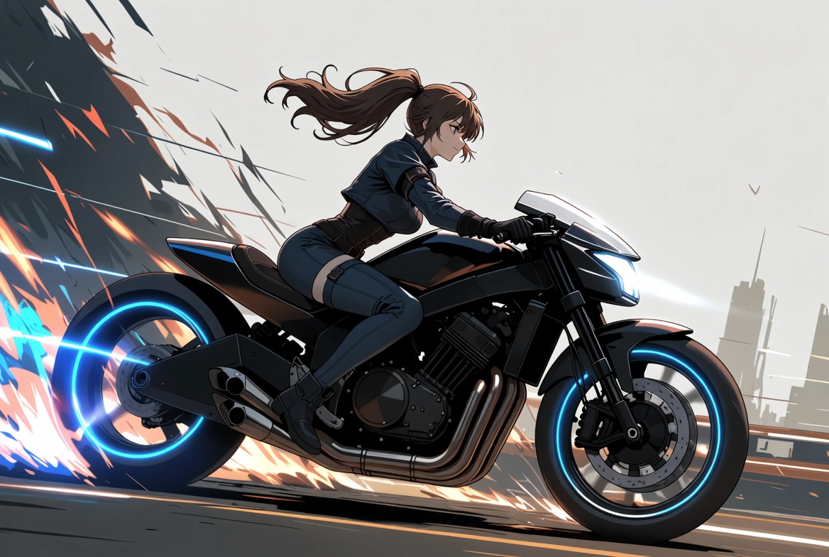 adventure, asphalt, biker, city, custom bike, energy, excitement, female rider, landscape, modern, motion, motorcycle, racing, silhouette, speed, stylish, sunset, technology, urban, woman