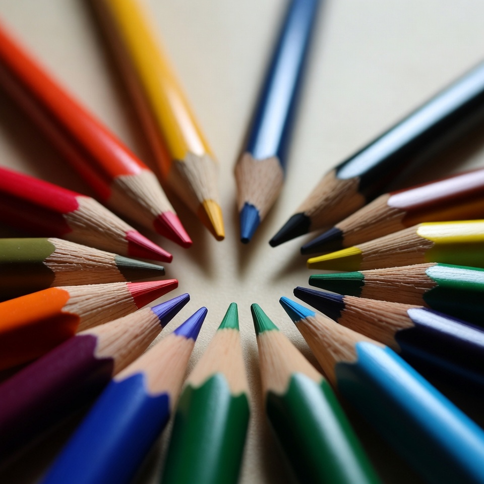 Colorful pencils arranged in a circle