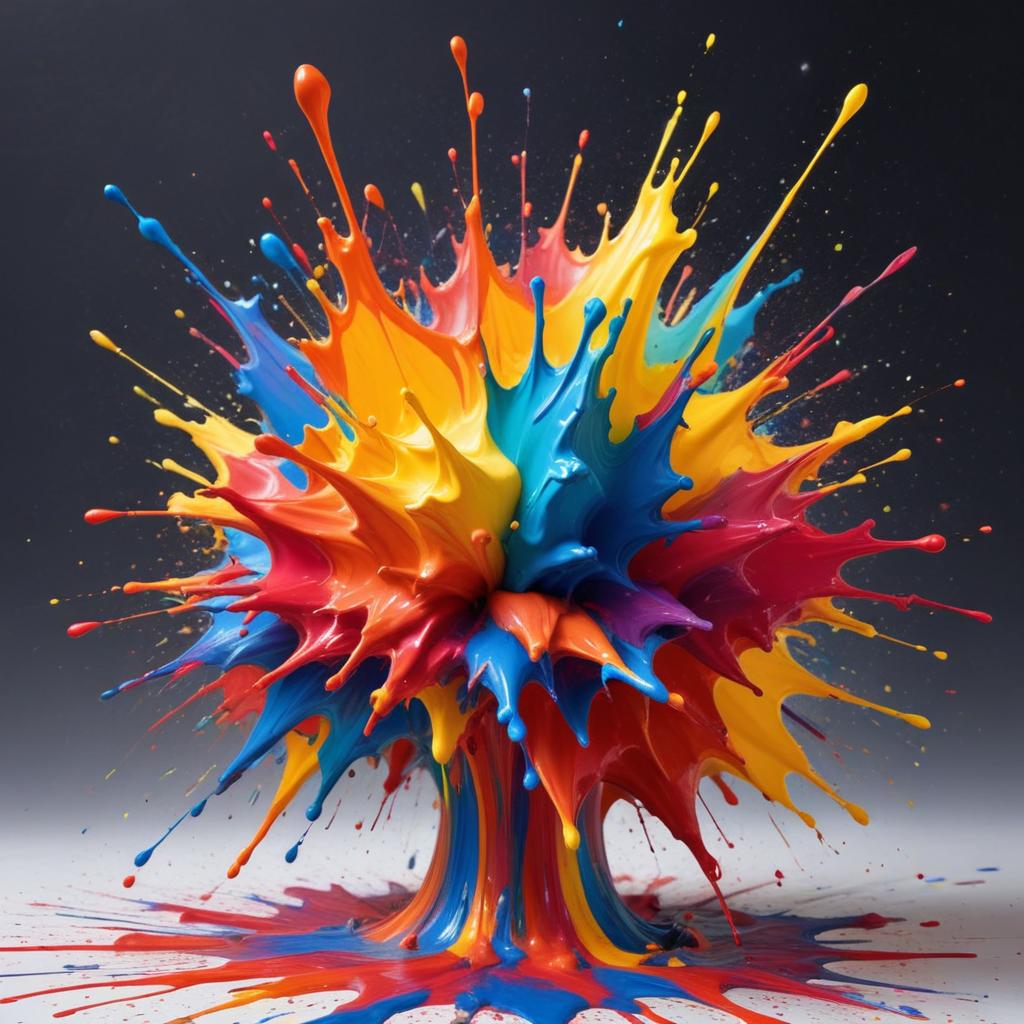 Bright colors burst in an artistic splash, creating a lively display. This vibrant explosion of paint showcases creativity and energy.