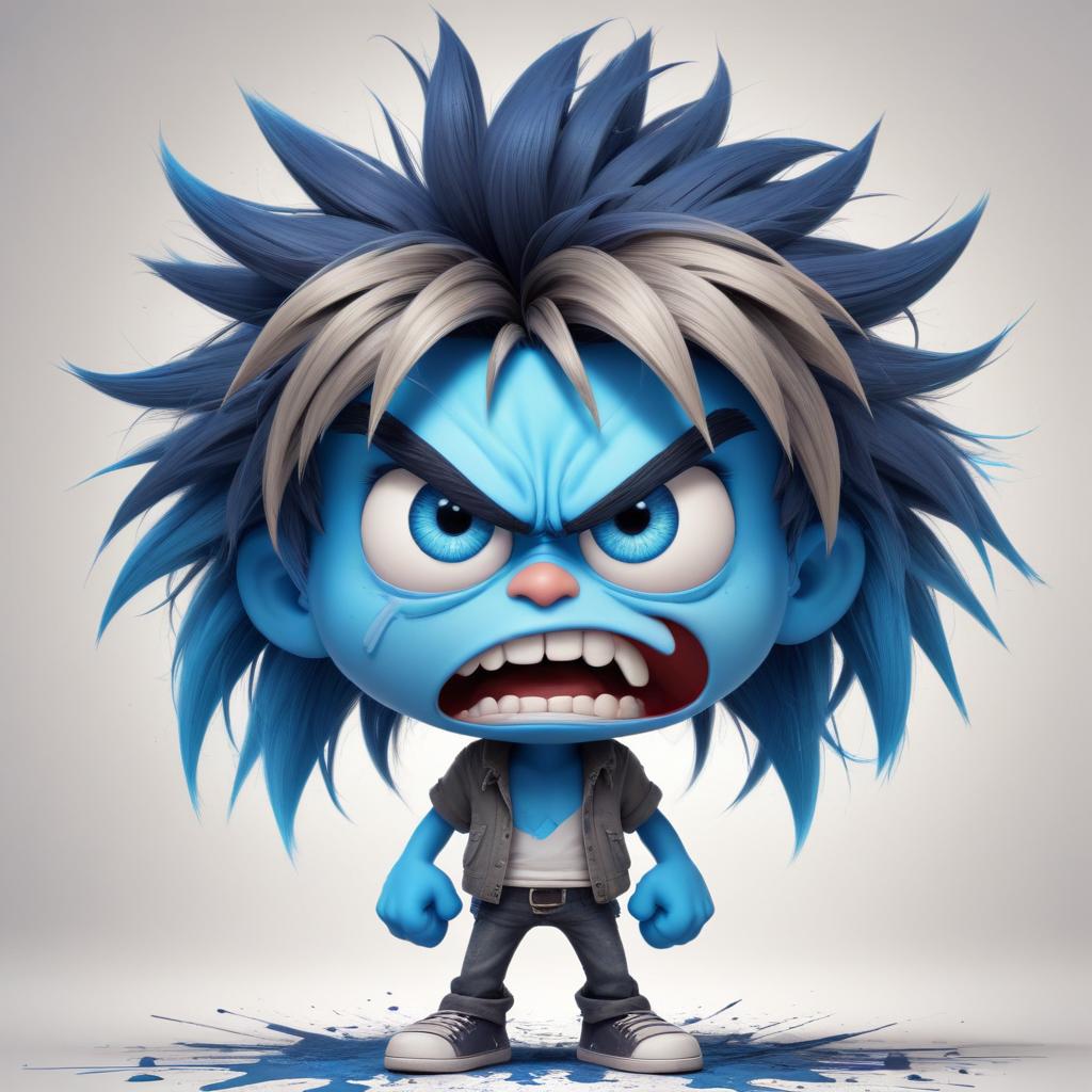 angry, animation, art, artistry, blue hair, cartoon, character, colorful, comic, creativity, cute, design, expression, fantasy, fierce, fun, joy, muscular, playful, spiky