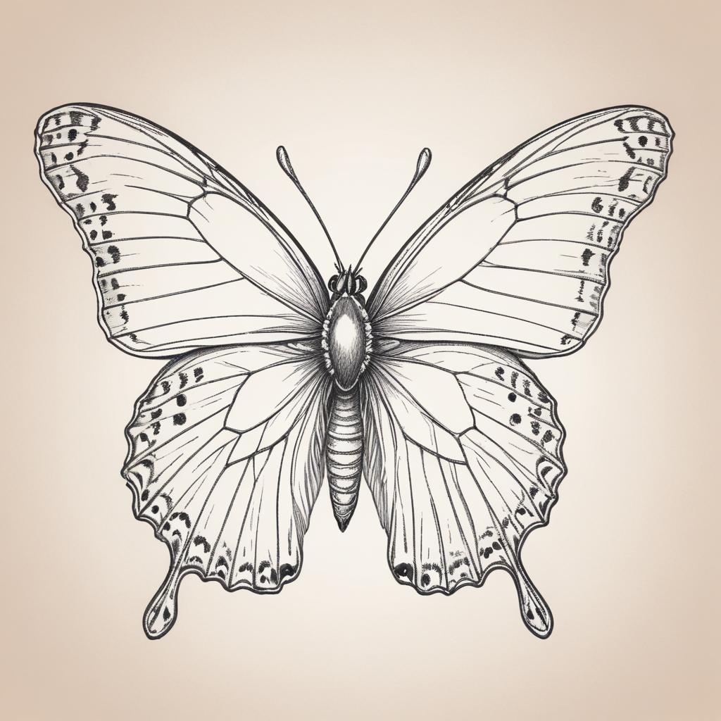 A beautifully detailed butterfly illustration on a soft beige background, showcasing intricate patterns and delicate features.