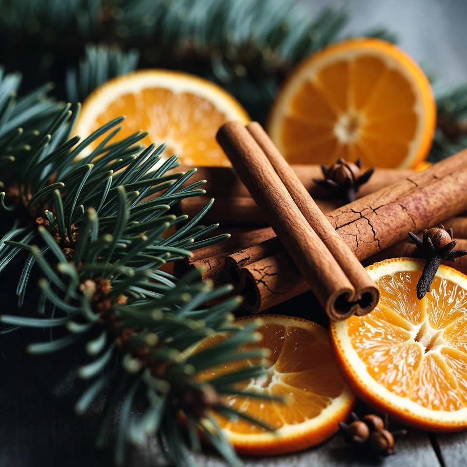 aroma, arrangement, baking, cinnamon, citrus, cozy, craft, decoration, evergreen, festive, holiday, kitchen, natural, orange, pine, scent, seasonal, spices, warmth, winter