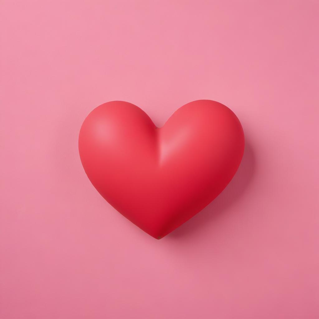 A red heart shape rests on a soft pink background, creating a warm and cheerful mood suitable for celebrations or decorations.