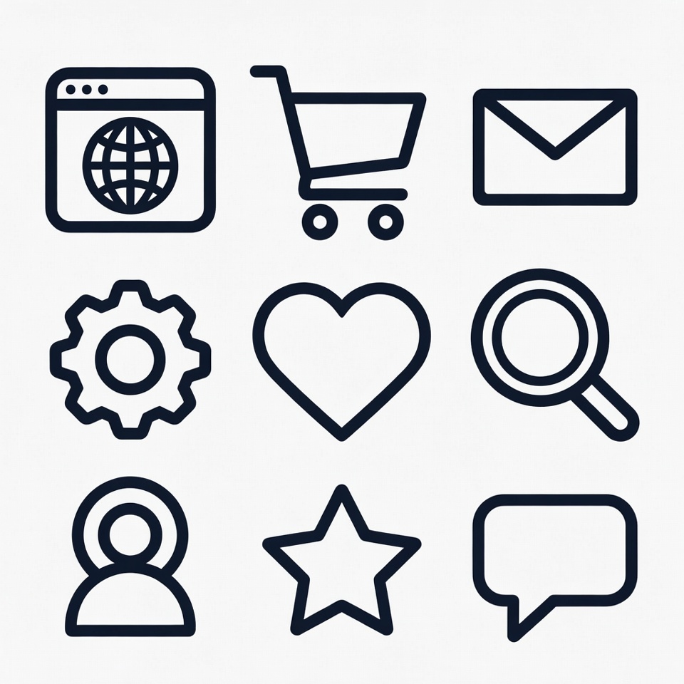 carts, chat, communication, design, digital, ecommerce, globe, heart, icons, interaction, messages, online, search, settings, shopping, social, star, technology, user, web