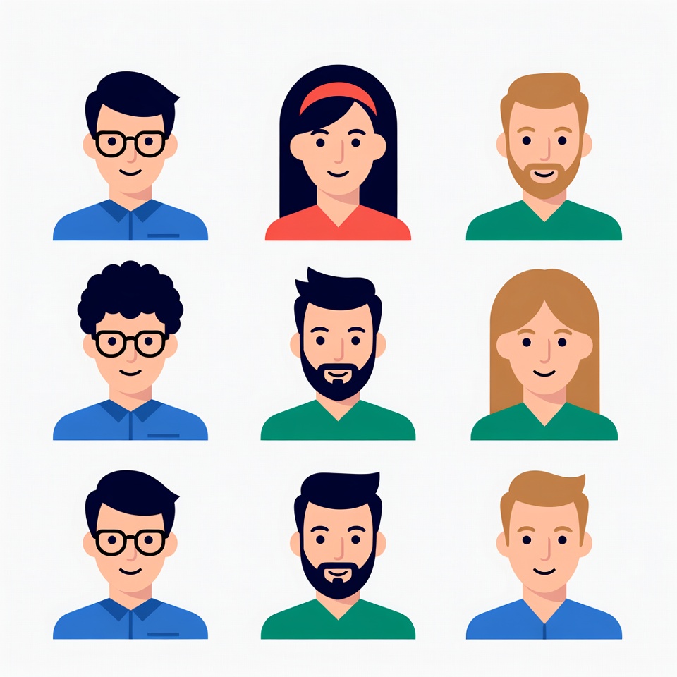 Nine cartoon-style characters grouped in a grid show different hairstyles and facial features, representing diversity and friendship in a fun way.
