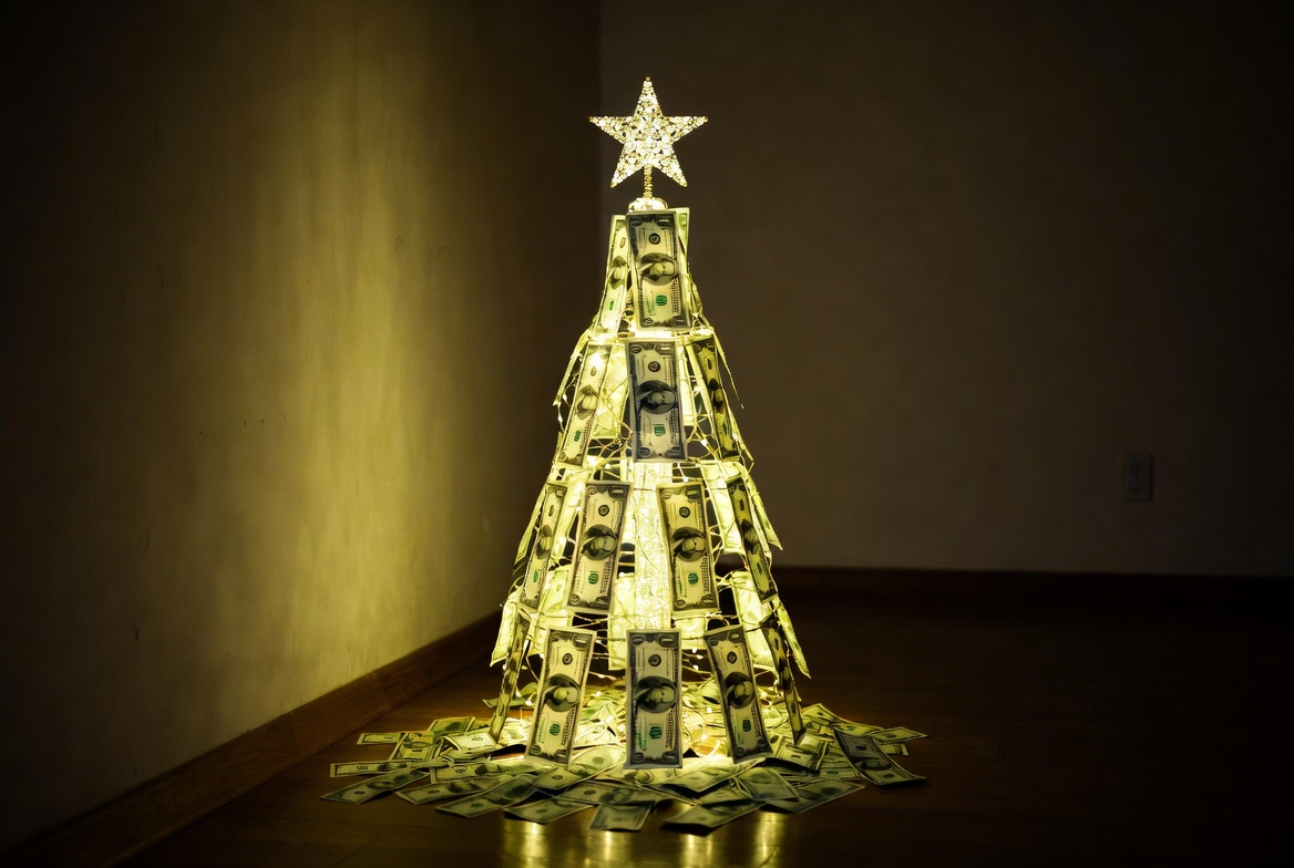 Christmas tree made of currency bills