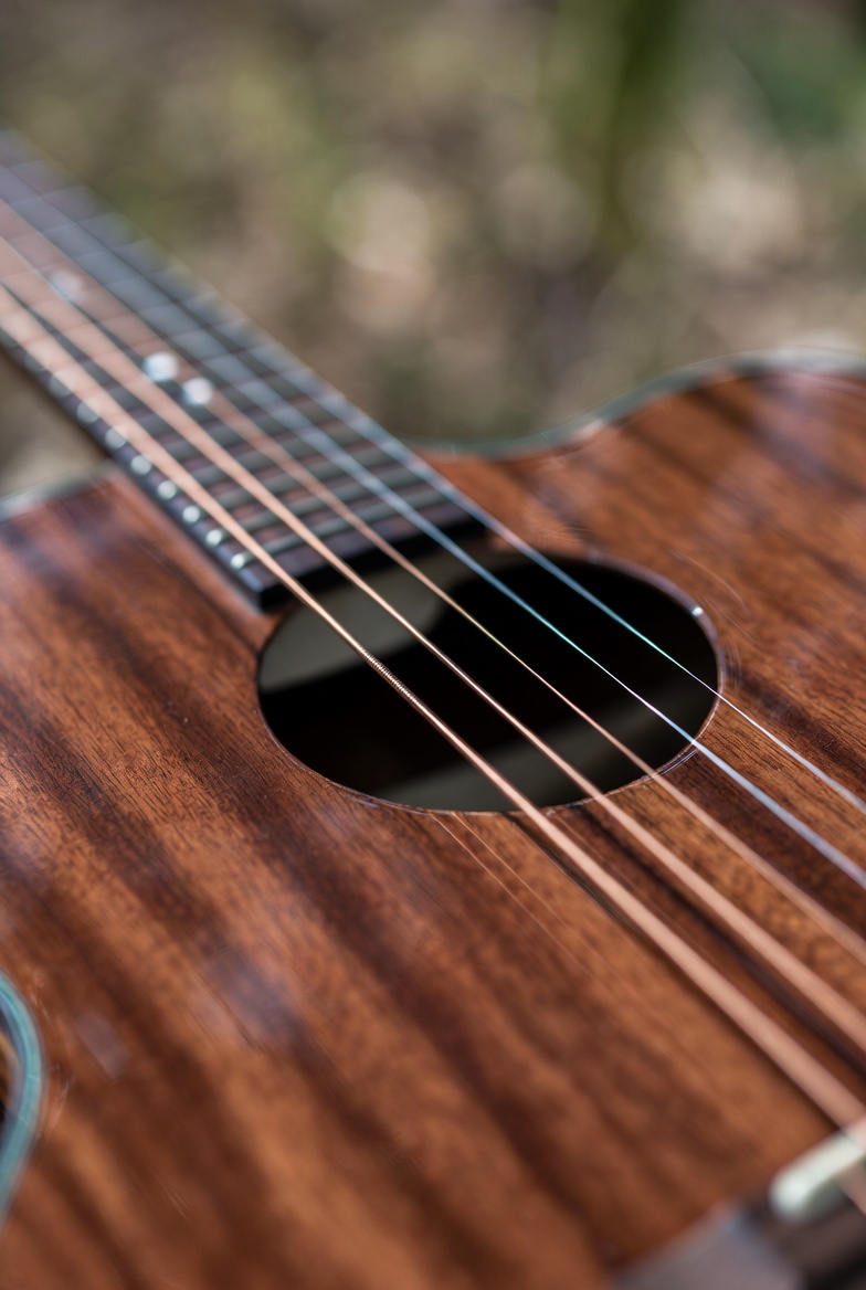 acoustic, art, beautiful, close-up, craftsmanship, creativity, hobby, leisure, music, music therapy, musical instrument, natural finish, sound hole, standing, strings, texture, ukulele, vivid details, warmth, wood