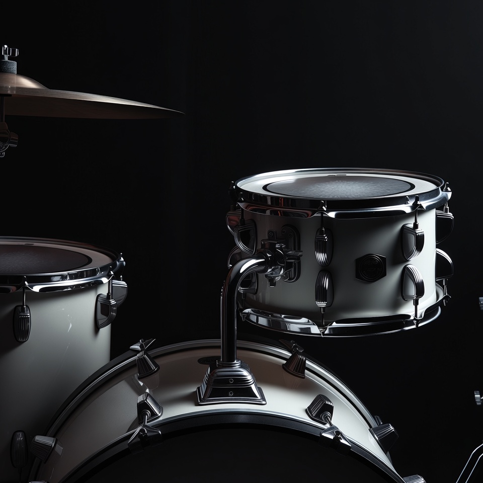 art, band, bass drum, black background, close-up, creative, drum set, equipment, instrument, lighting, music, musician, percussion, performance, rhythm, shadow, shiny, snare drum, sound, studio
