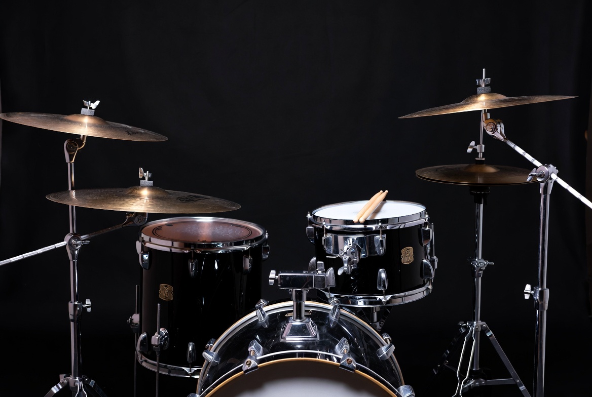 backdrop, band, black drums, creative space, cymbals, drum set, drumsticks, entertainment, music equipment, music session, musical instruments, musicians, percussion, performance, practice, recording, rehearsal, rhythm, sound, studio