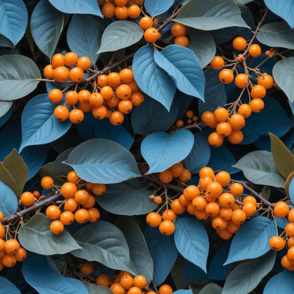 Bright orange berries pop against deep blue leaves, showcasing the striking beauty of nature's colors.