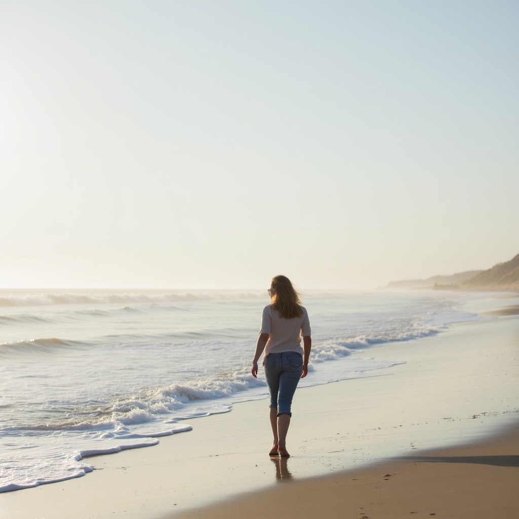 Walking along the serene beach