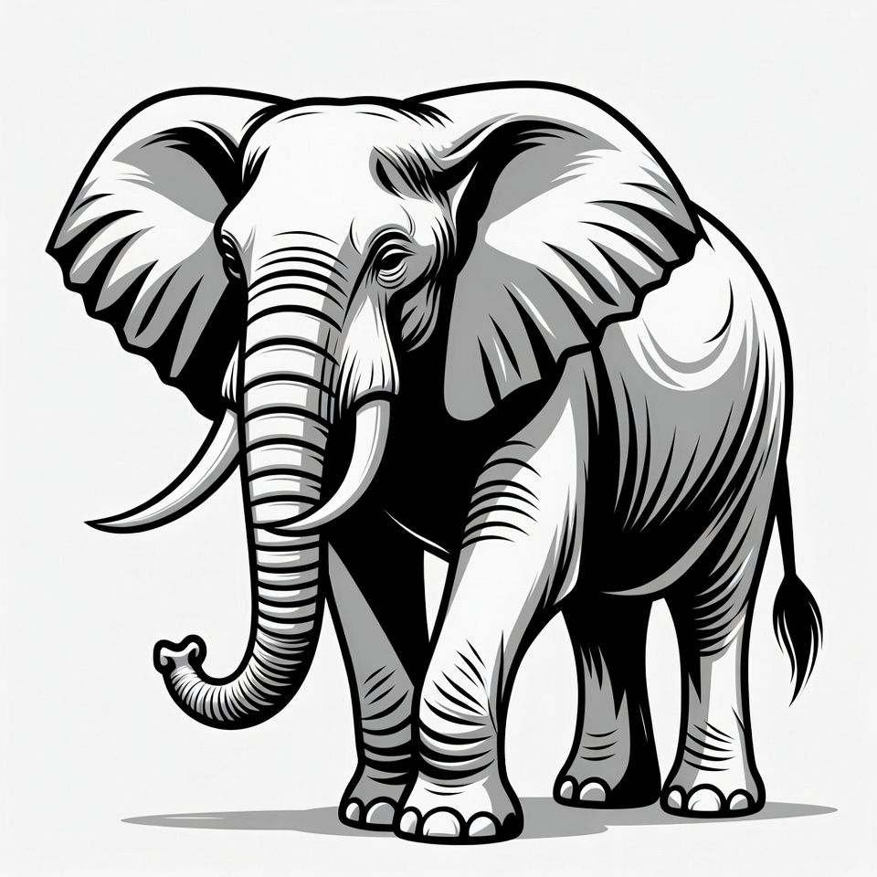 Africa, Asia, animal art, detailed, drawing, ears, elephant, fauna, graphic design, illustration, majestic, monochrome, nature, posture, powerful, sketch, standing, strength, trunk, wildlife