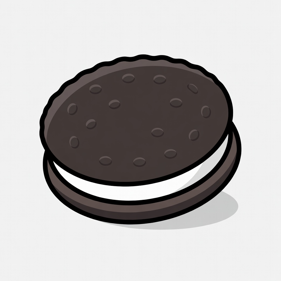 A round chocolate sandwich cookie featuring a smooth white filling. Enjoyed as a sweet snack at any time of day.