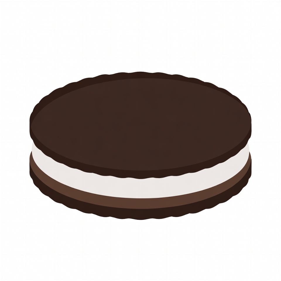 A chocolate sandwich cookie with creamy filling sits on a clean surface, ready to be enjoyed as a sweet treat or dessert snack.