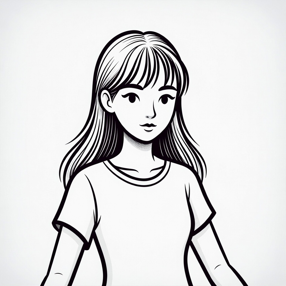 art, attitude, beauty, casual, character, confidence, design, expression, feminine, illustration, lines, long hair, portrait, relaxed, shirt, simplicity, sketch, style, woman, youth