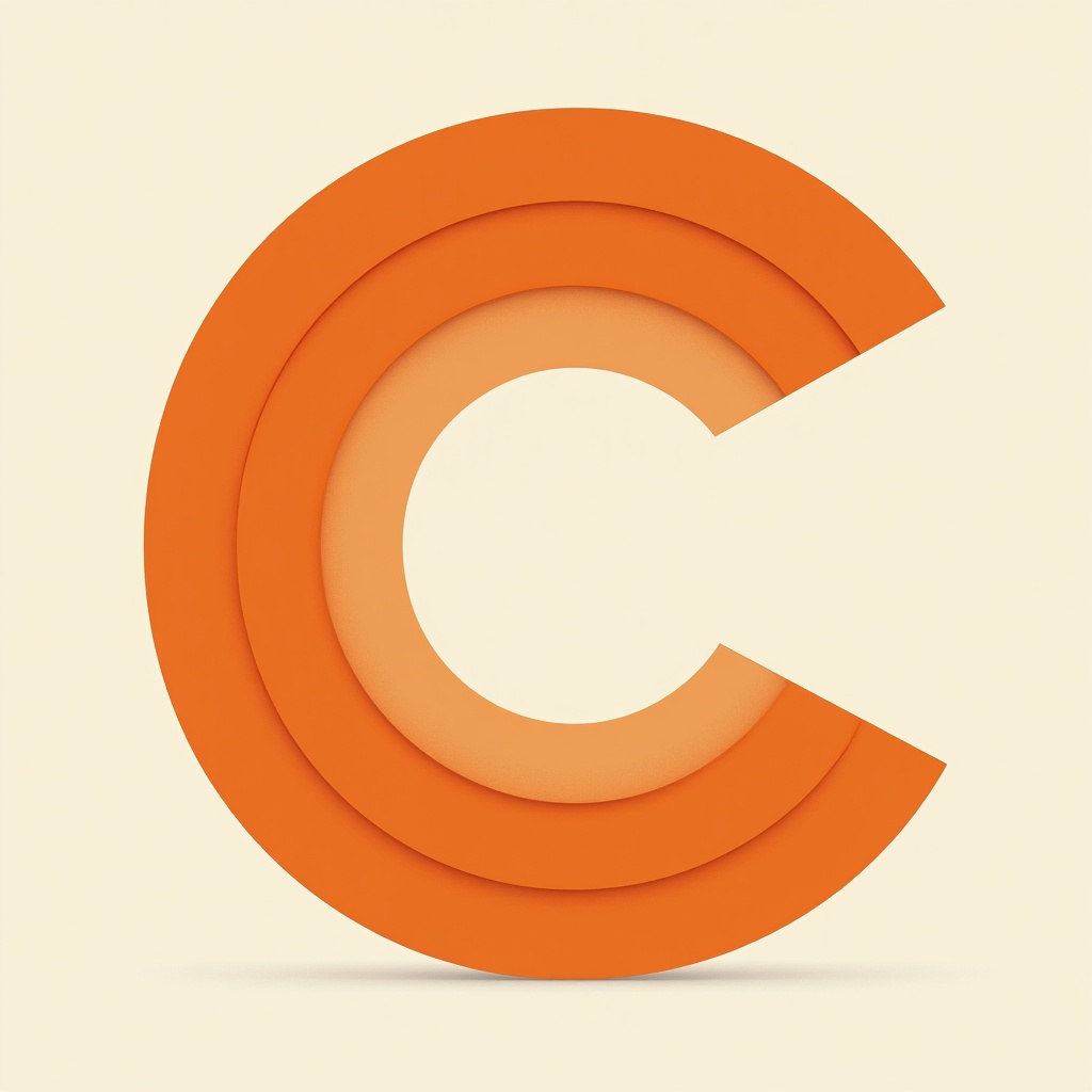 A three-dimensional letter C made of layers in orange shades. The design shows depth with a cut-out section in the letter.