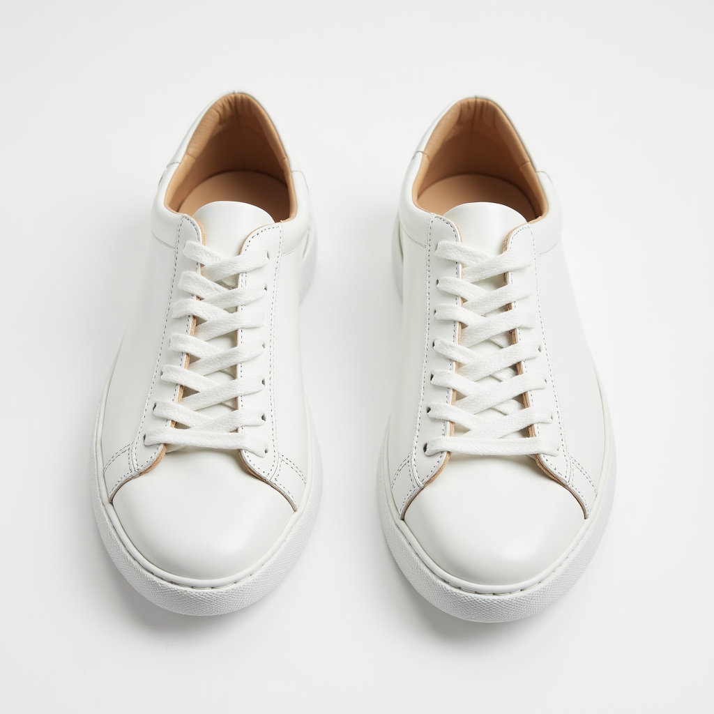 Pair of white shoes placed on a simple surface. The shoes have a clean design and are ready for use or display.