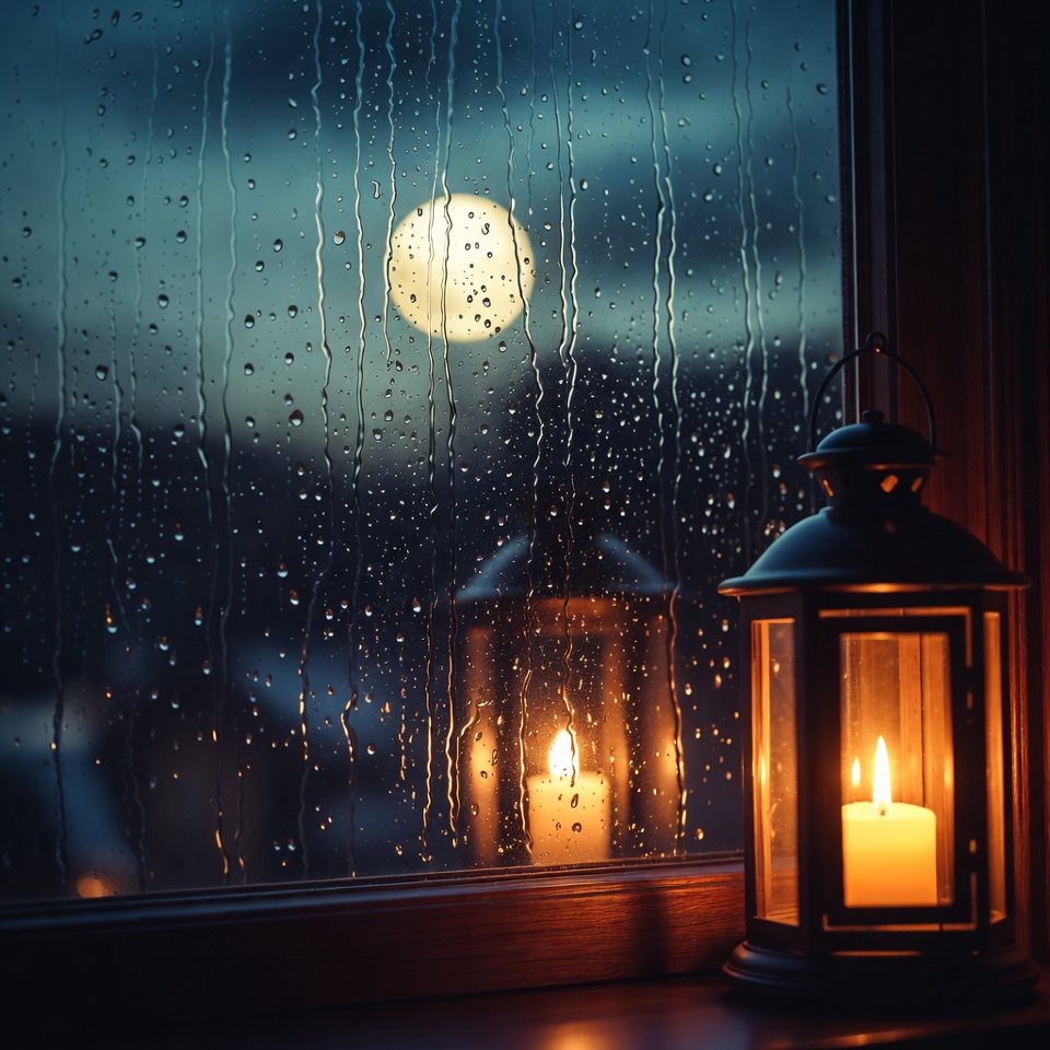 Rainy night with candlelight and moon