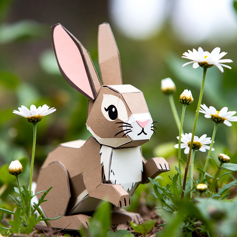 animal, art, craft, creativity, cute, daisies, decoration, flowers, garden, greenery, handmade, hobby, nature, outdoor, paper, play, rabbit, scene, spring, wildlife