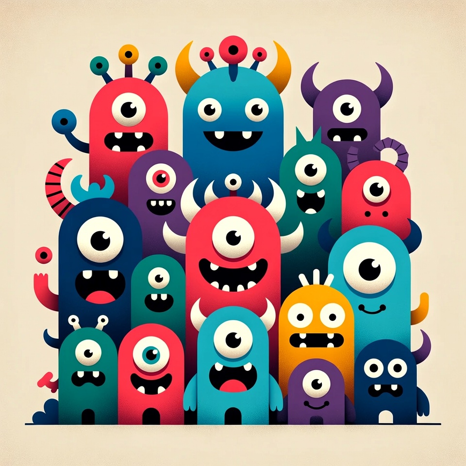 Playful cartoon monsters in color