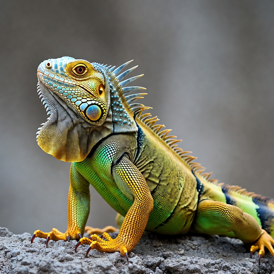 animal, basking, blue, close-up, colors, creature, environment, green, habitat, head, lizard, nature, outdoor, reptile, rock, scales, sun, texture, wildlife, yellow