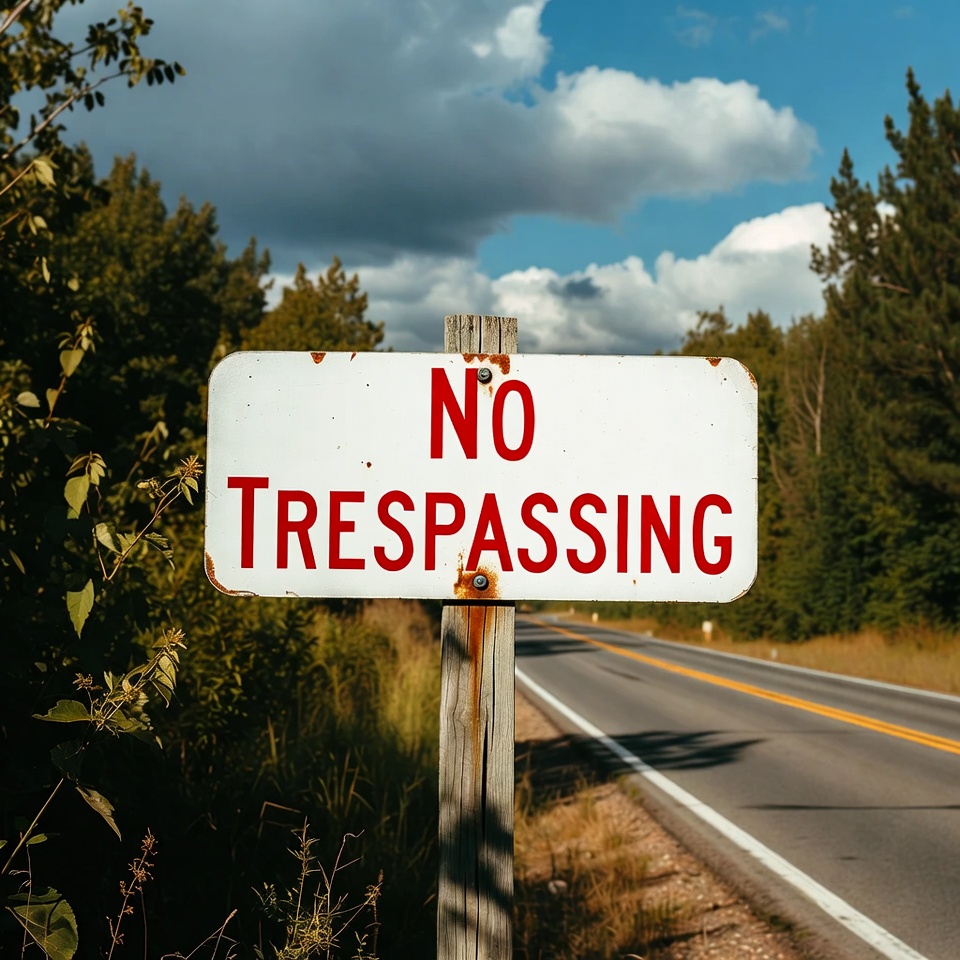 No trespassing sign on roadside