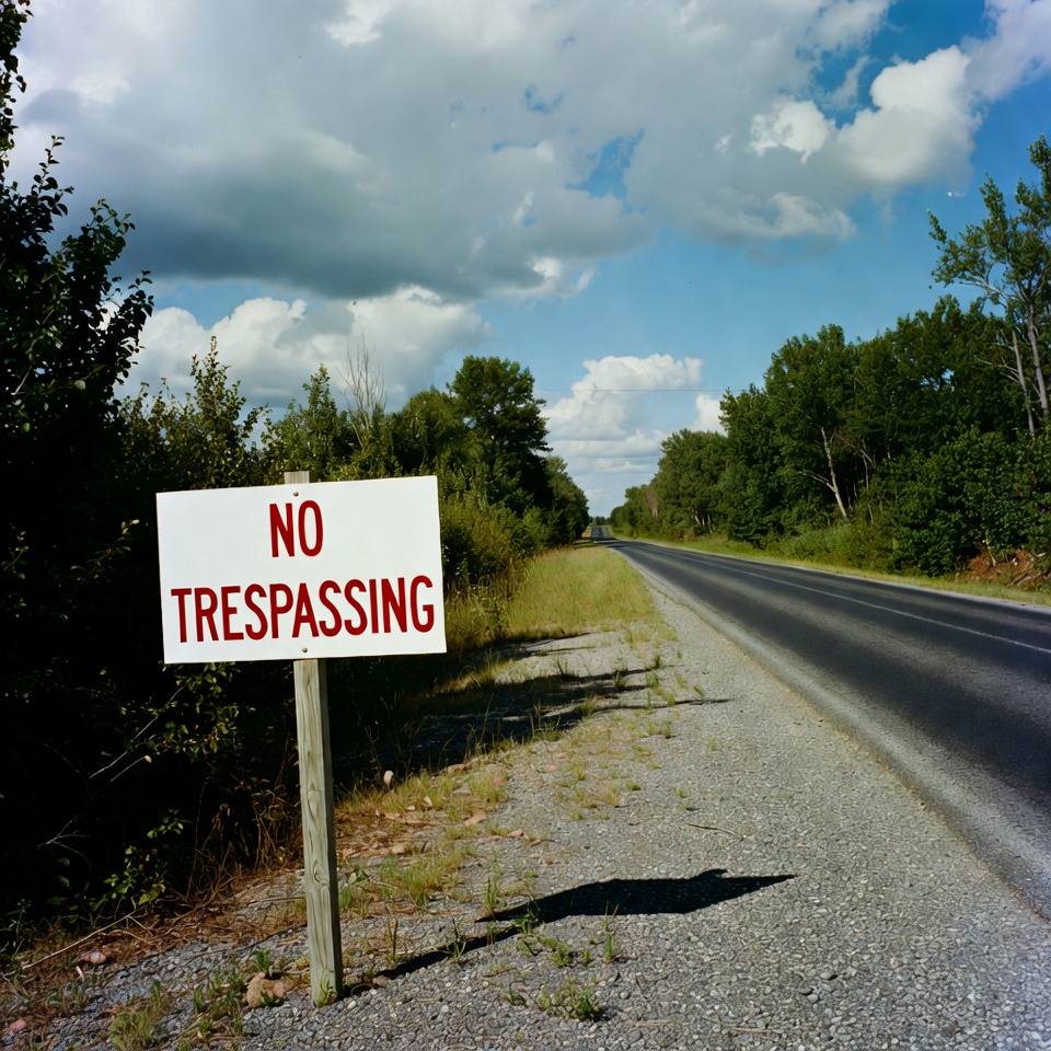 Sign on rural road warns of trespassing