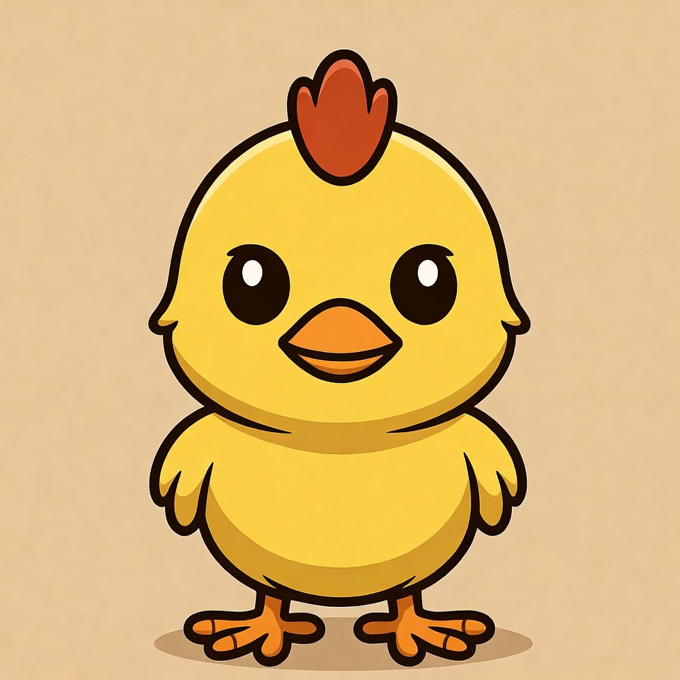 animal, art, beak, cartoon, character, chicken, comb, cute, design, face, friendly, fun, graphic, happy, illustration, look, playful, simple, standing, yellow