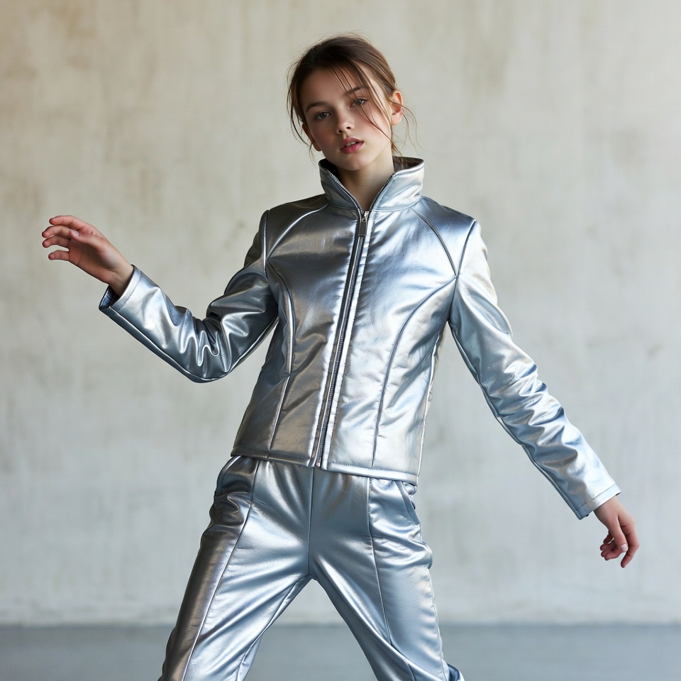 apparel, clothing, creative, design, elegance, expression, fashion, light, model, modern, movement, performance, pose, runway, shoot, silver outfit, studio, stylish, trends, youth