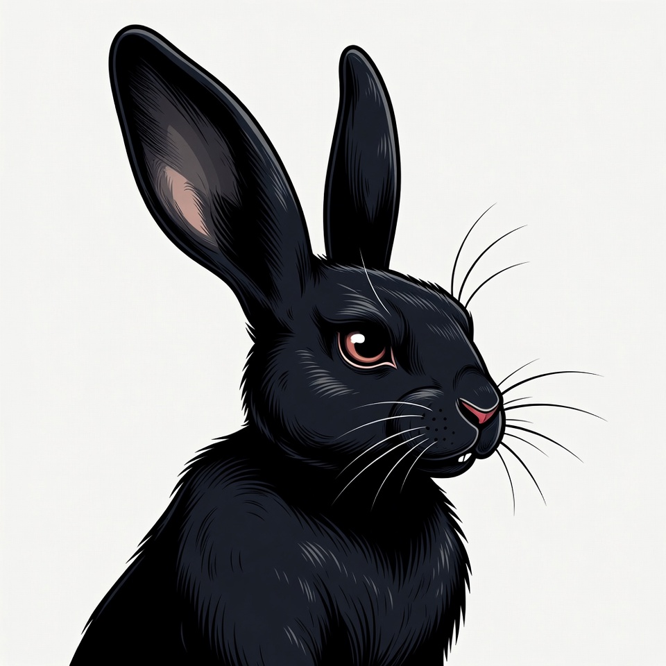 animal, black, close-up, creature, design, detailed, drawing, ears, expression, features, fur, fur texture, illustration, nature, pet, portrait, rabbit, whiskers, wild, wildlife