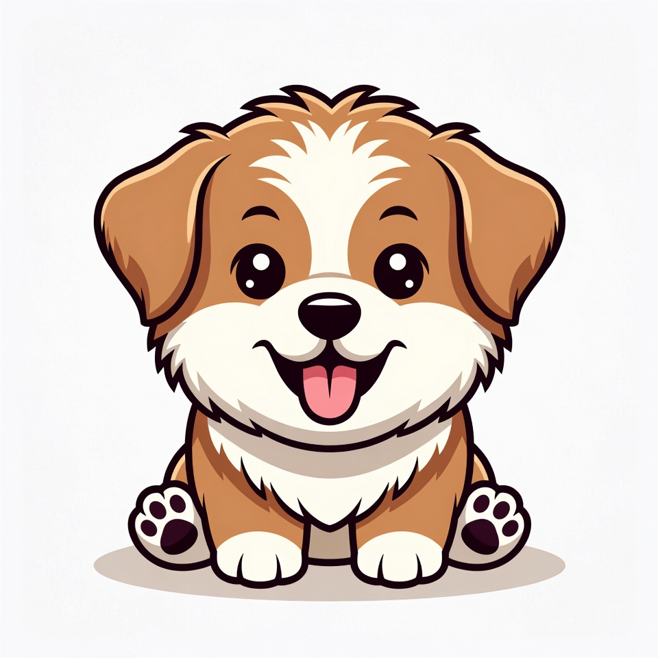 animal, art, cartoon, character, companion, cute, design, dog, expression, friend, fur, happy, happy face, illustration, paws, pet, playful, puppy, sitting, smiling