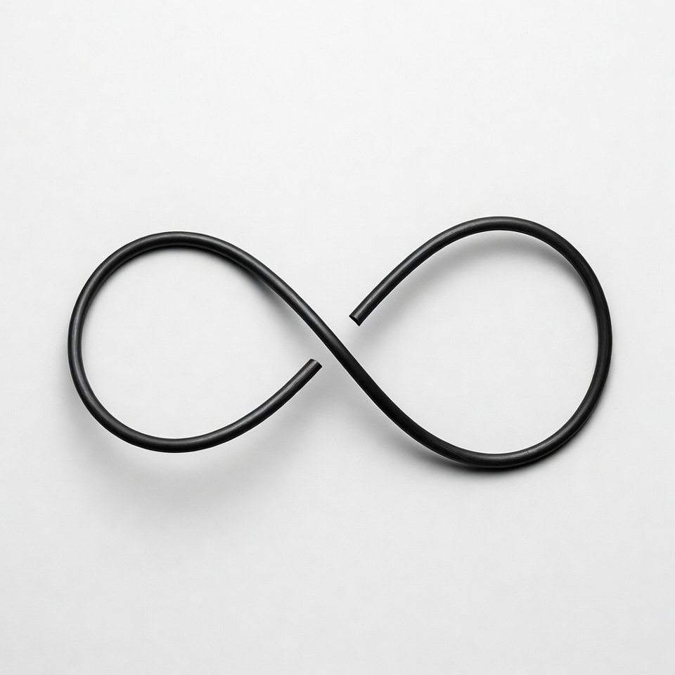 art, black, concept, continuity, creativity, design, endless, graphics, illustration, infinity, loop, minimalist, object, outline, rubber, shape, simplicity, surface, symbol, white