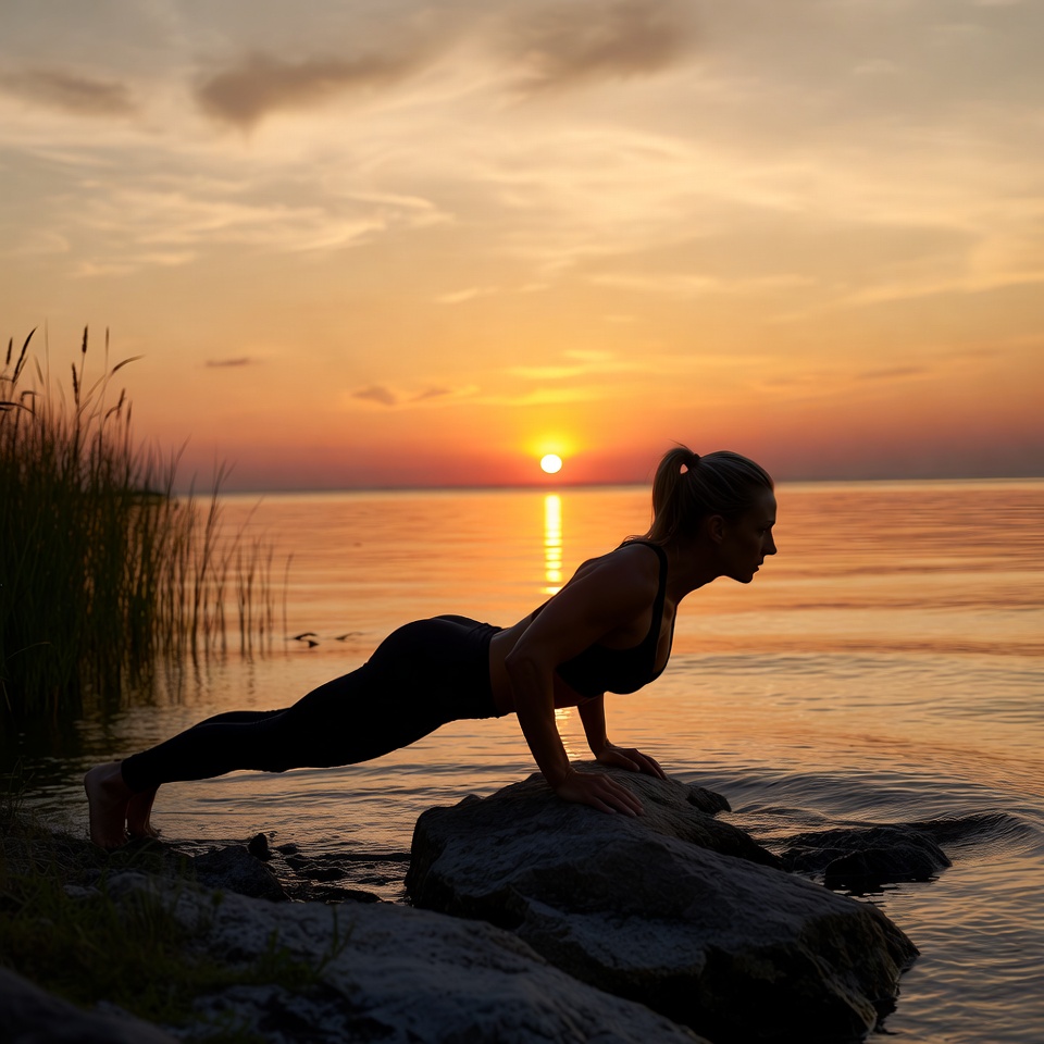 Sunset push-up by the water