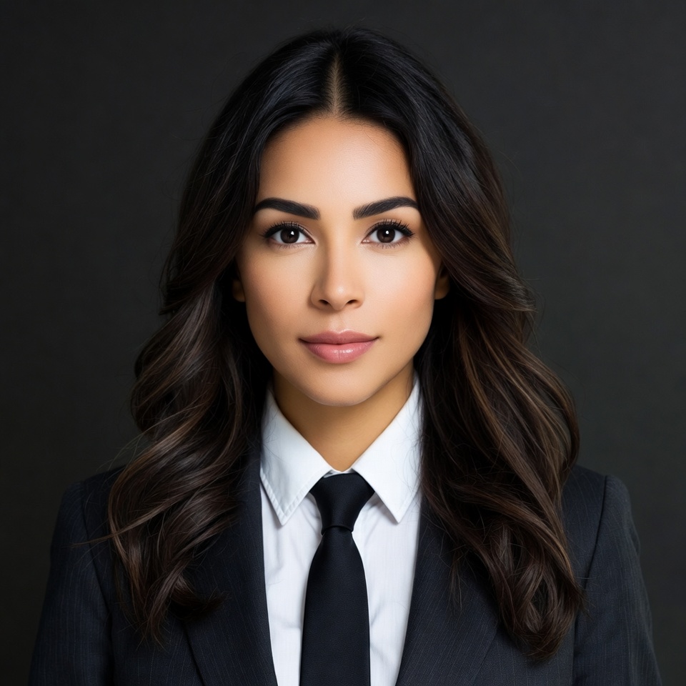 appearance, attire, business, career, confident, corporate, darkness, expression, face, hair, makeup, model, office, portrait, professional, serious, style, suit, tie, woman