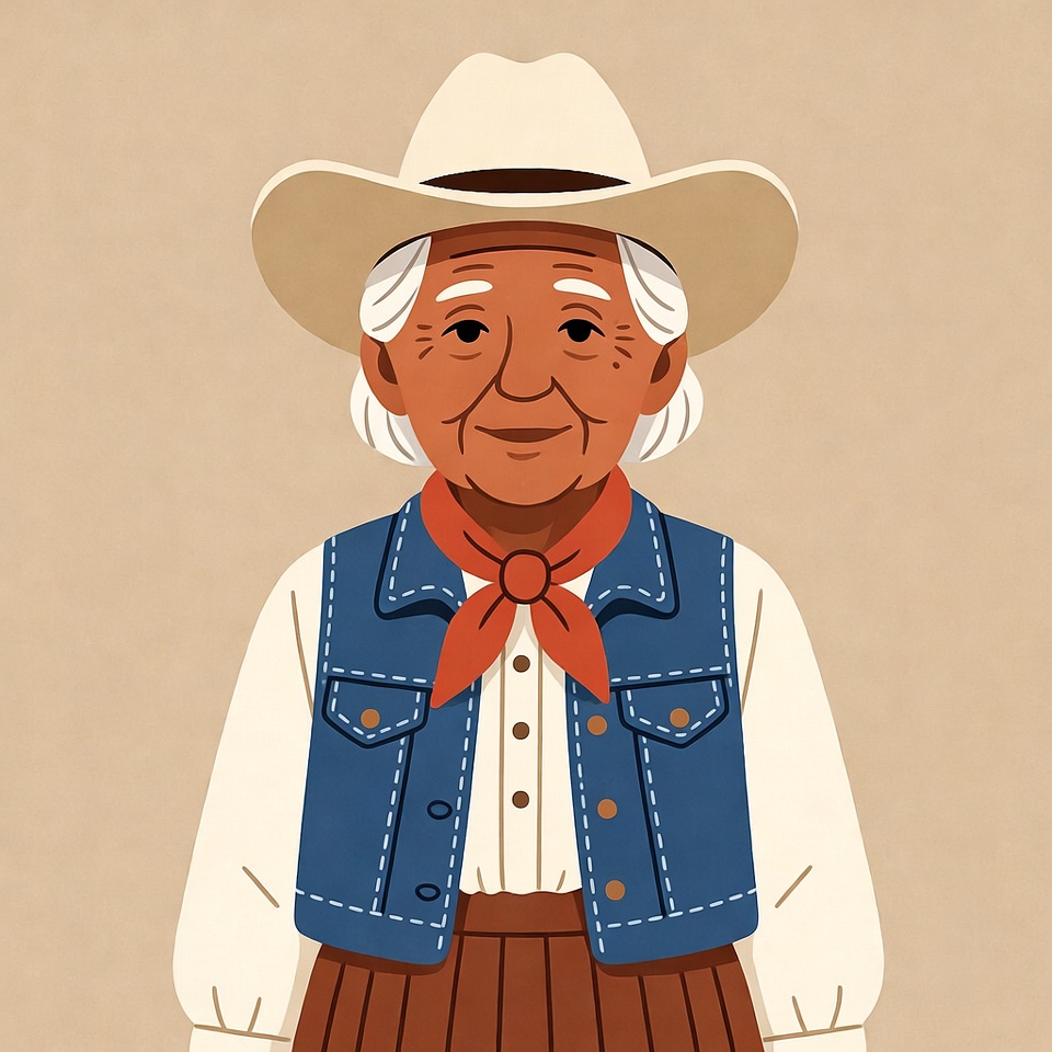 accessory, art, casual, character, clothing, cowboy, culture, design, hat, illustration, neckerchief, older person, portrait, rancher, simple, smiling, style, traditional, vest, western