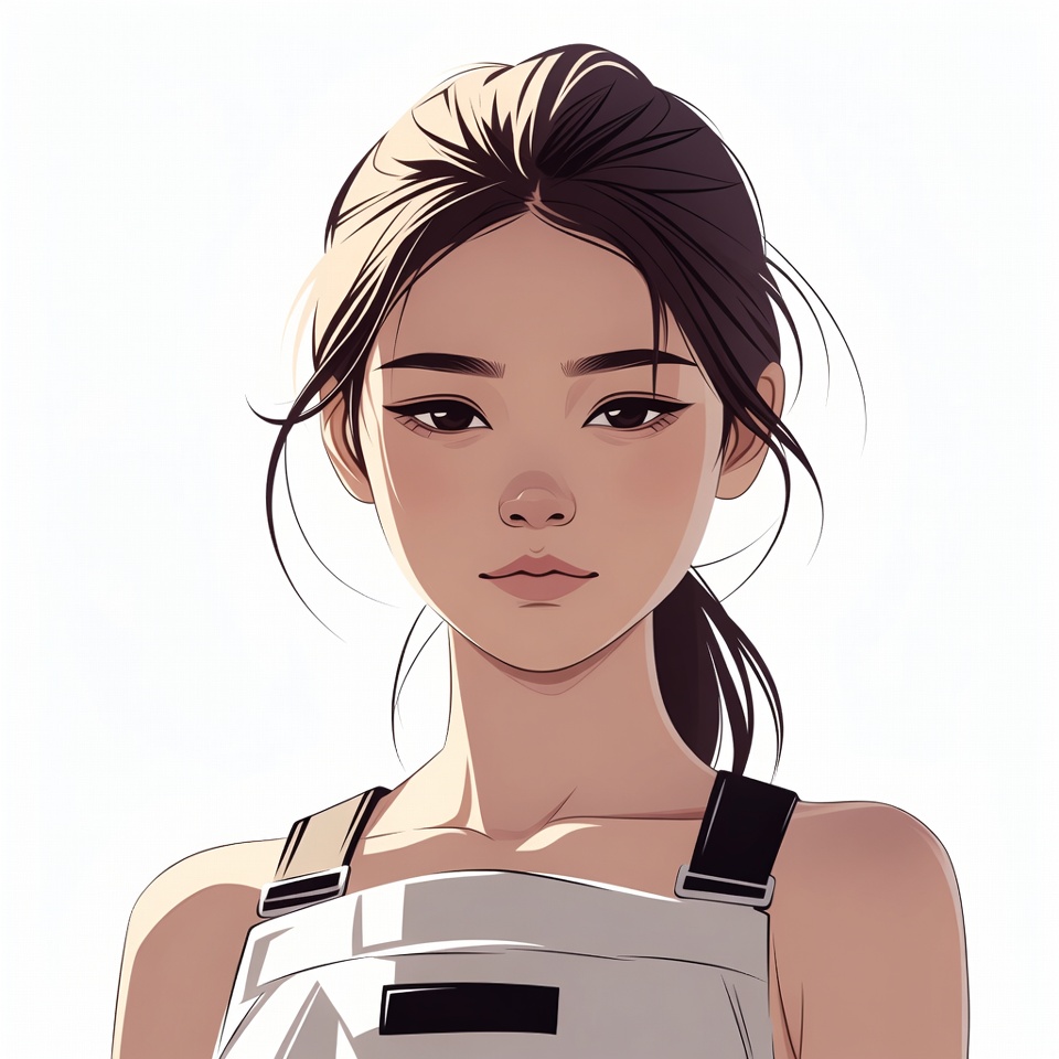 art, casual wear, character design, creativity, expression, female, focus, hair, hairstyle, illustration, light, modern, person, portrait, simplicity, standing, studio, studio setting, young woman, youth
