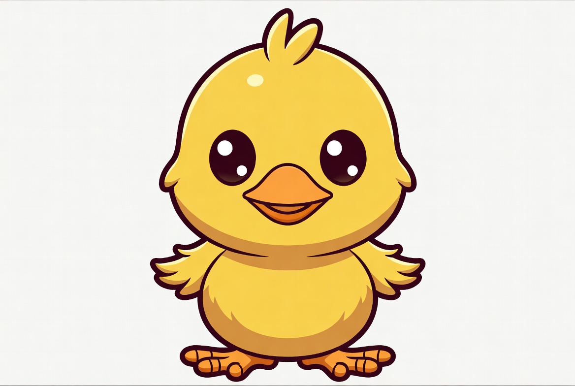 animal, animation, beak, bird, cartoon, character, chick, childhood, colorful, cute, design, fun, happy, illustration, pet, playful, round, smile, wings, yellow