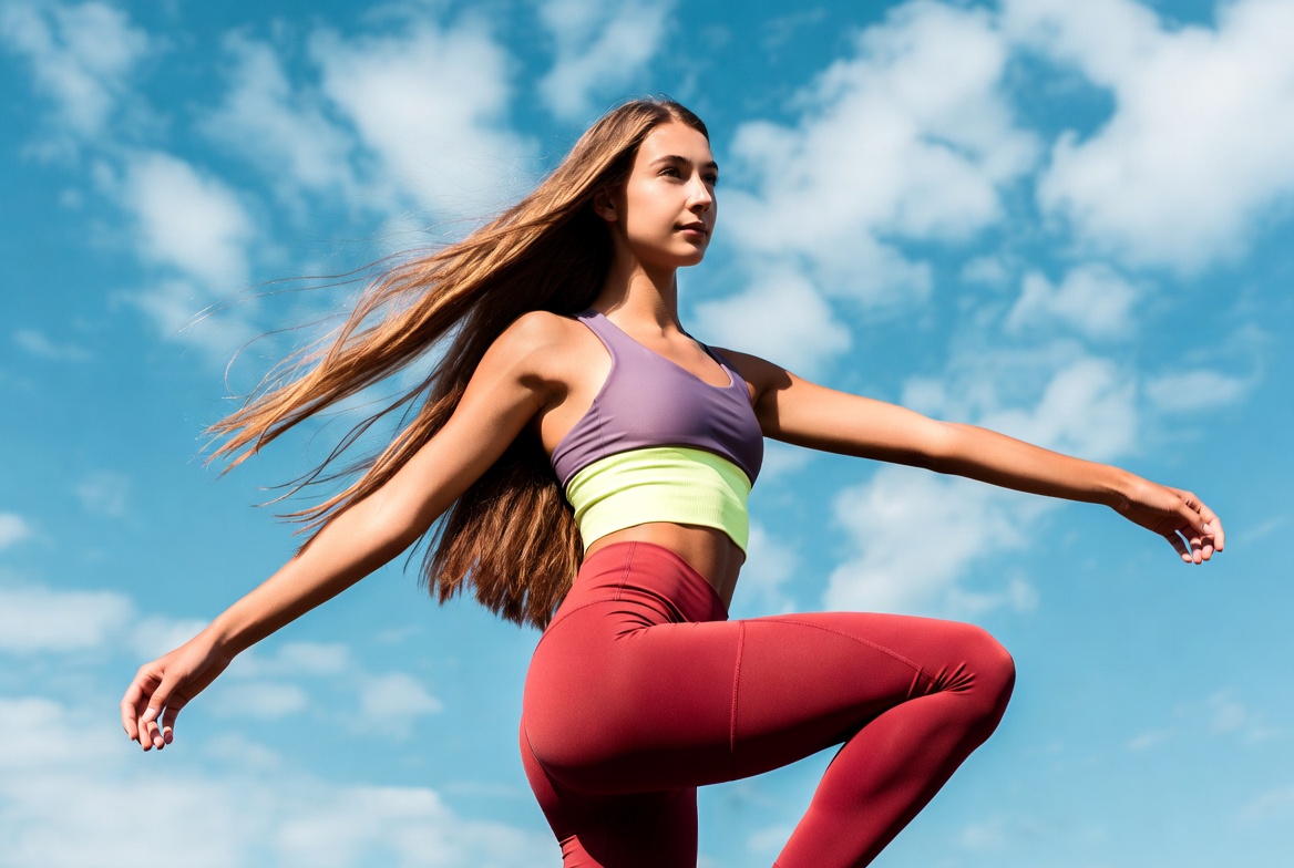 Outdoor fitness activity in bright sky