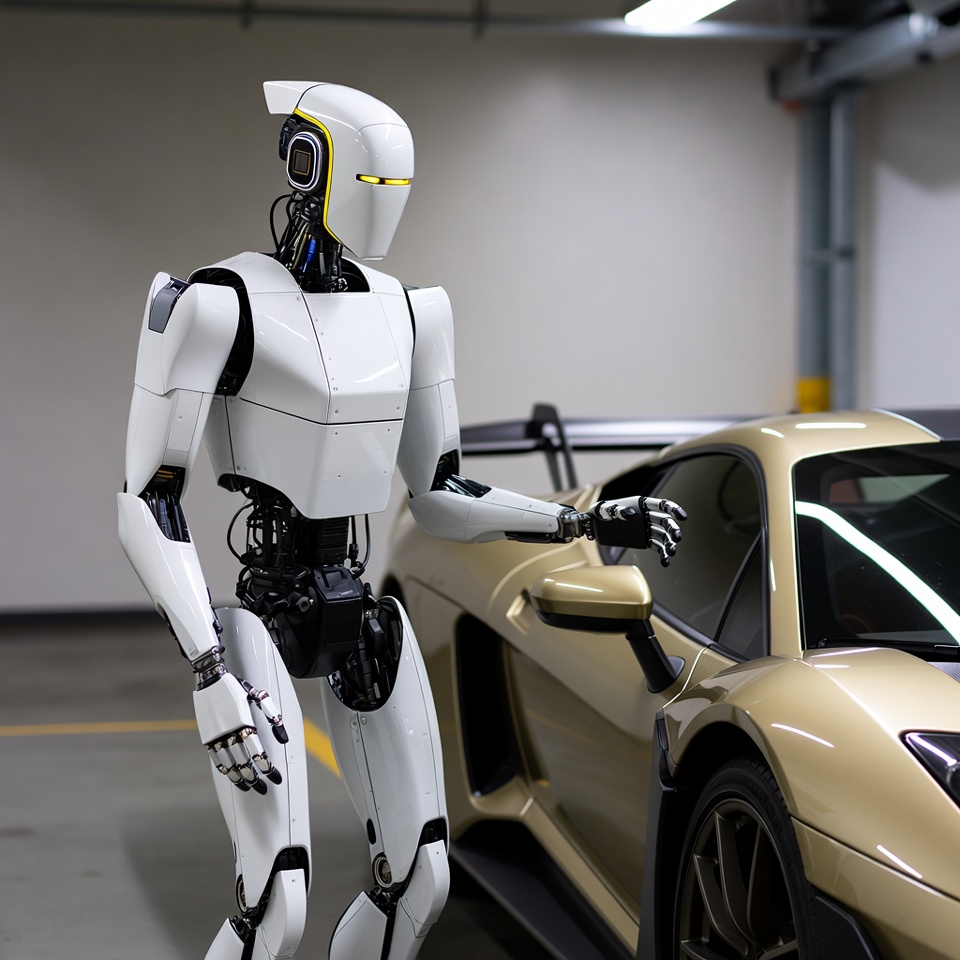 Robot near a luxury car