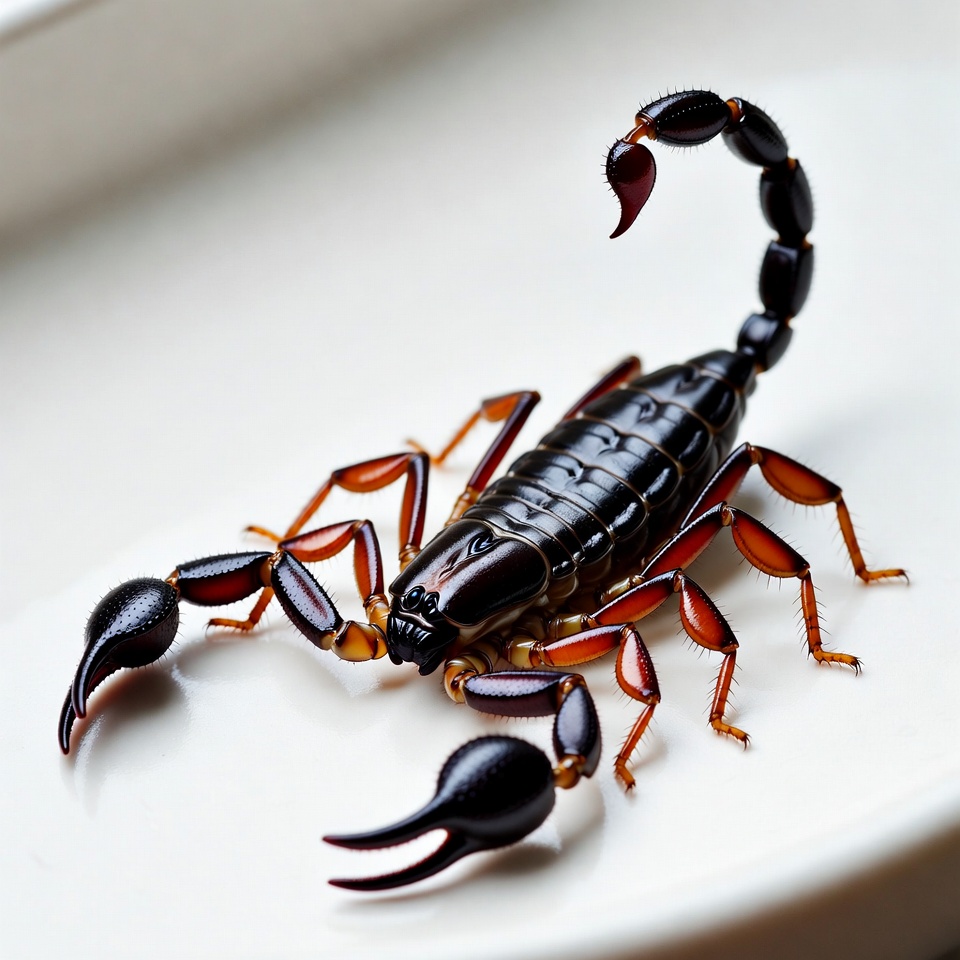 Scorpion on white surface