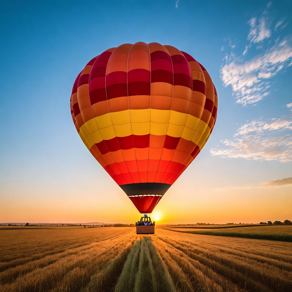 adventure, ascent, basket, colorful, evening, experience, exploration, flight, fun, golden field, landscape, nature, outdoor, people, sky, sky colors, summer, sunset, tourism, travel
