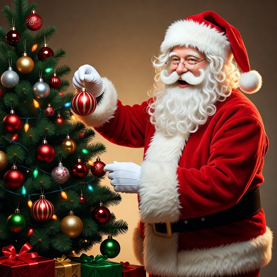 Santa decorating the christmas tree