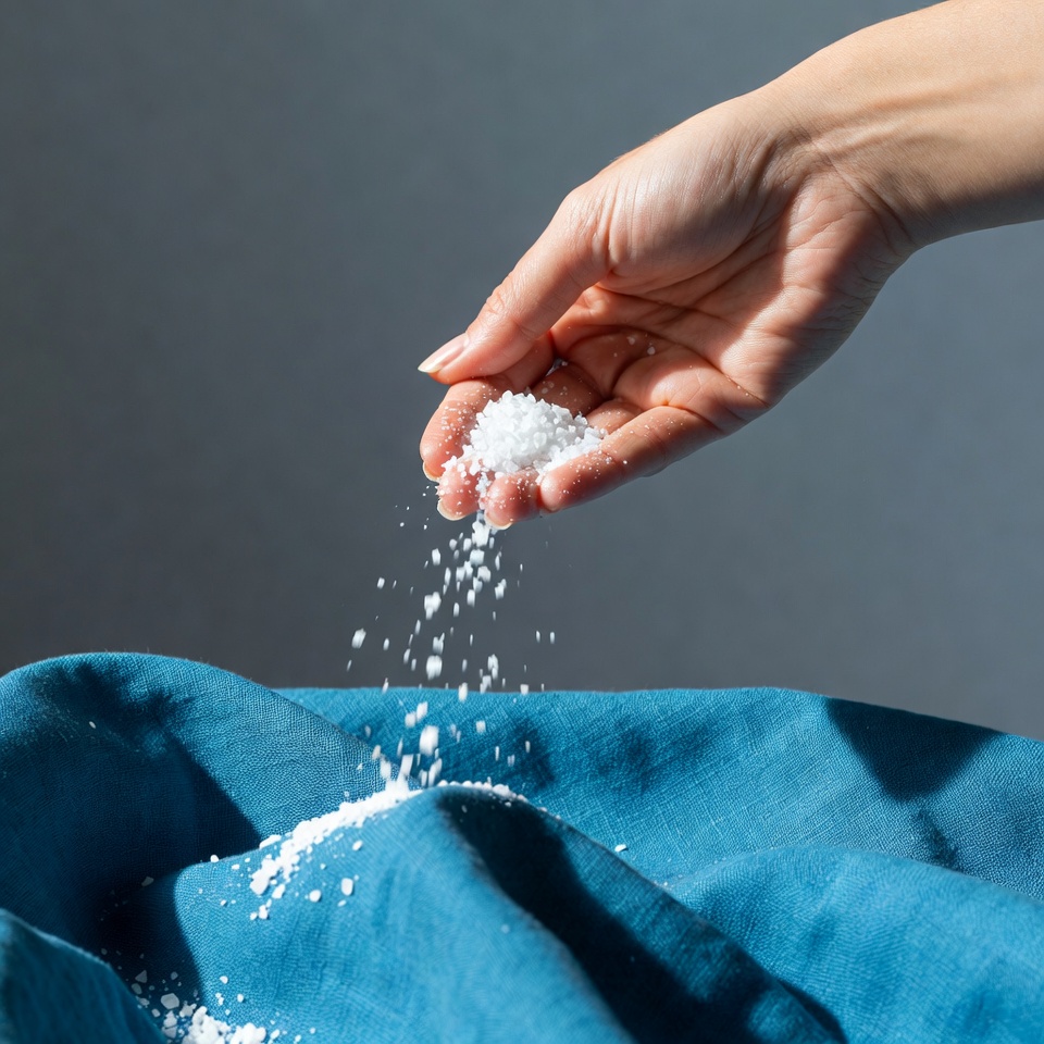 Hand pouring salt onto fabric