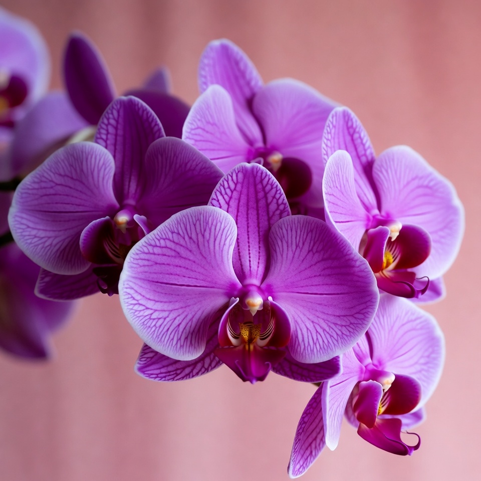 arrangement, beauty, bloom, botanical, bright, color, details, flora, flowers, growing, home, indoor, leaves, nature, orchids, petals, plant, purple, sunlight, vivid