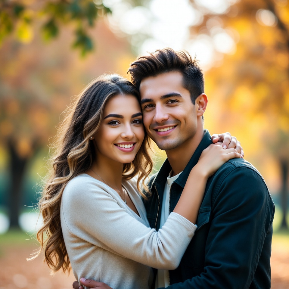 Couple embraces in autumn park