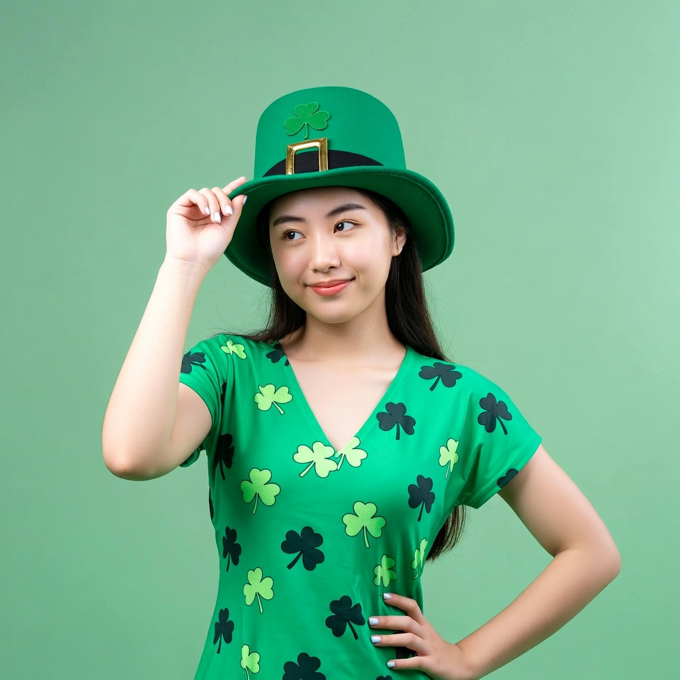 Irish, accessories, attire, celebration, culture, festive, green, happiness, hat, holiday, joy, joyful, outfit, party, person, shamrock, smiling, spring, themed, tradition