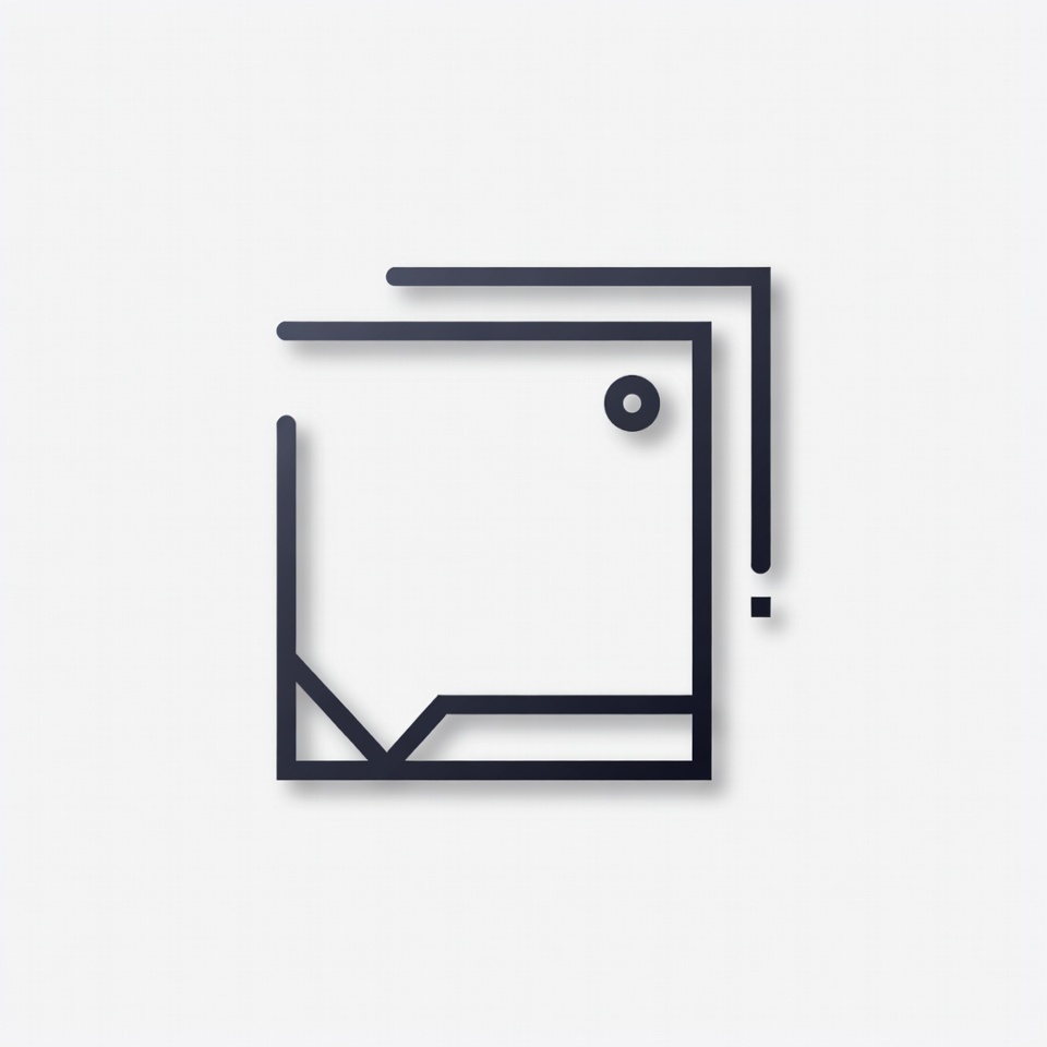 A simple line art design shows a geometric frame with an empty space and a dot. It emphasizes minimalism in visual art.