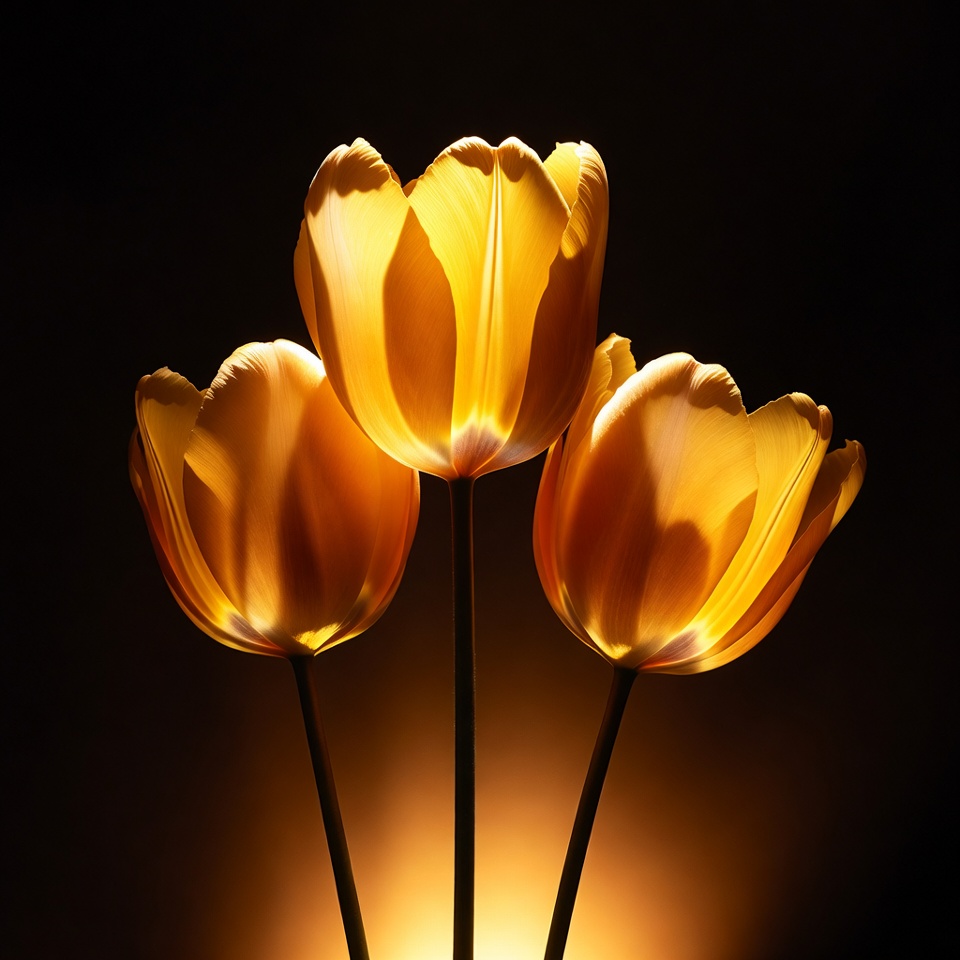 Three tulips lit from behind