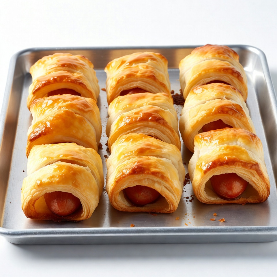 Baking tray holds warm pastry rolls filled with fruit. They are golden brown and ready to serve as a snack or dessert.